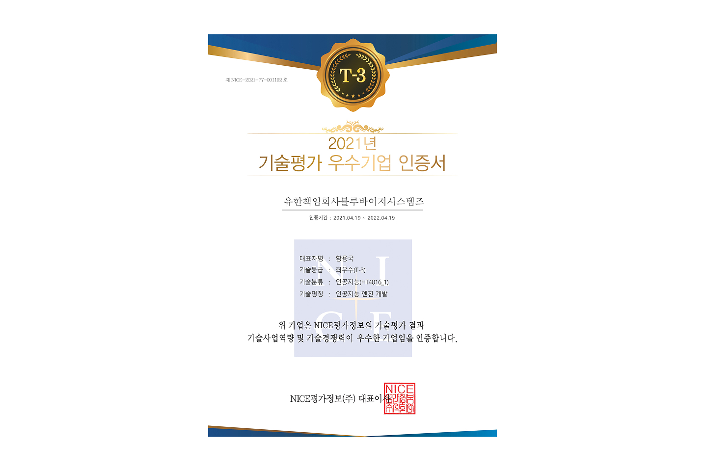 • T-3 기술평가 인증서