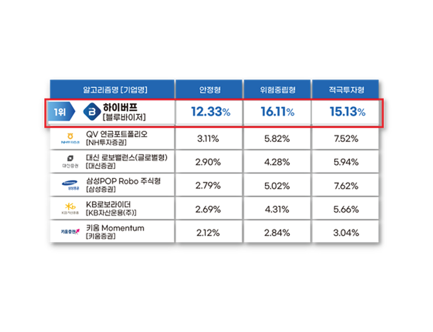한국금융당국 로보어드바이저 안정성&신뢰성 심사에서 대기업을 제치고 수익률 1위로 검증 받았습니다.
